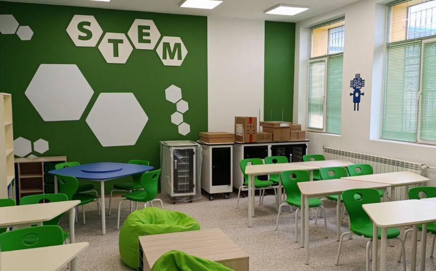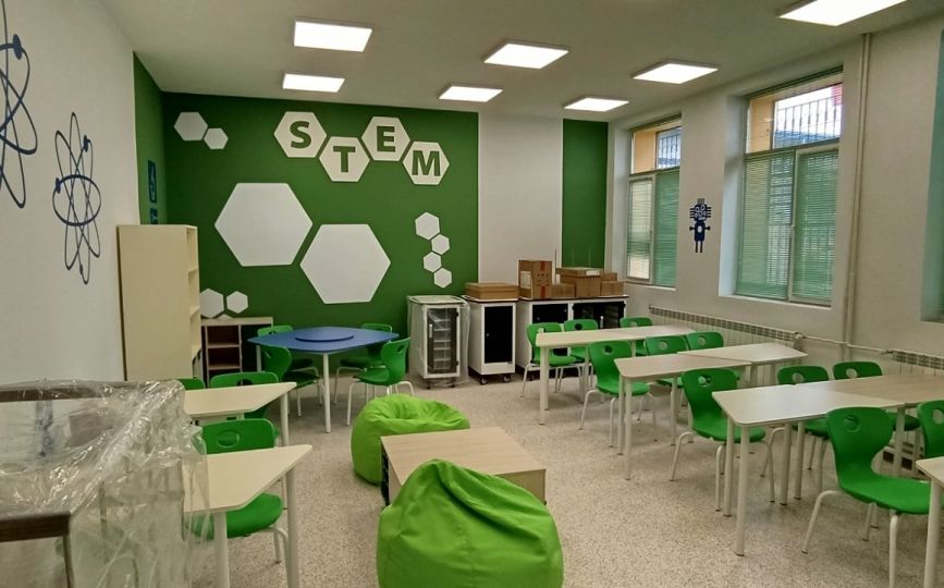 Изграден STEM център по процедура за предоставяне на средства по Механизма за възстановяване и устойчивост BG-RRP-1.015 „Училищна STEM среда“.